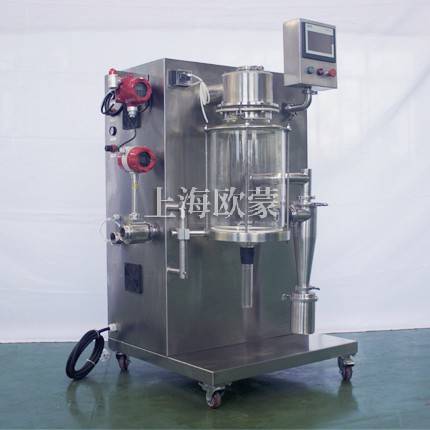 小型噴霧干燥機(jī)主要在科研階段對溶液或流體樣品進(jìn)行噴霧干燥成粉或微小顆粒。其原理是通過霧化器將樣品霧化成微細(xì)霧滴,進(jìn)入干燥室內(nèi)進(jìn)行熱交換,水份瞬間蒸發(fā),固體經(jīng)過旋風(fēng)分離器進(jìn)行回收,飽和氣體經(jīng)過除塵器過濾后排空,本設(shè)備可應(yīng)用于從試驗(yàn)室到一般研究室的噴霧干燥作業(yè),在食品醫(yī)藥化工行業(yè)均可良好的應(yīng)用。